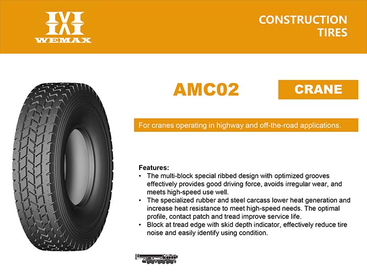 • Block at tread edge with skid depth indicator, effectively reduce tire noise and easily identify using condition.