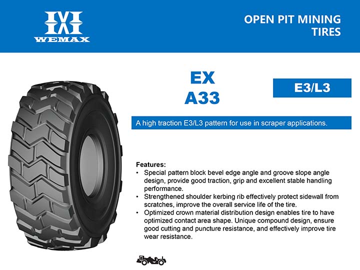 • Optimized crown material distribution design enables tire to have optimized contact area shape. Unique compound design, ensure good cutting and puncture resistance, and effectively improve tire wear resistance.